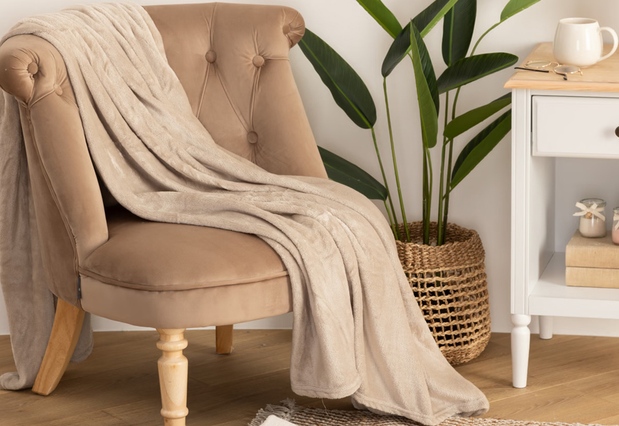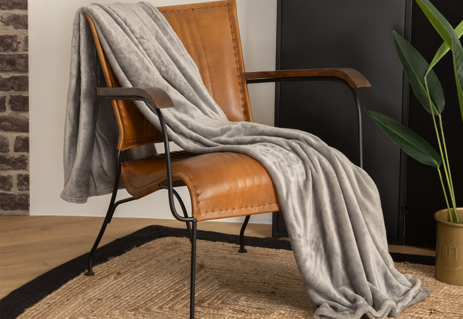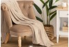 Manta plaid lisa en tejido extra suave de sedalina de la marca Atmosphera. Tres colores a alegir: beige, gris y azul. Tamaño: 130x180 cm. Composición: 100% Poliéster. Packaging enrollada a granel con blister de cartón impreso con fotografia e información. Peso: 0,53 kg - El calor que no pesa. Lavable a máquina. Certificación OEKO-TEX.