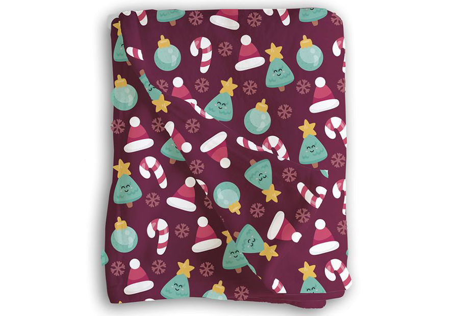 Manta plaid navideña en tejido de coralina estampada de la marca D'CASA. Tamaño: 125x150 cm. Composición: 100% poliéster de microfibra. Packaging a granel con vitola de cartón.