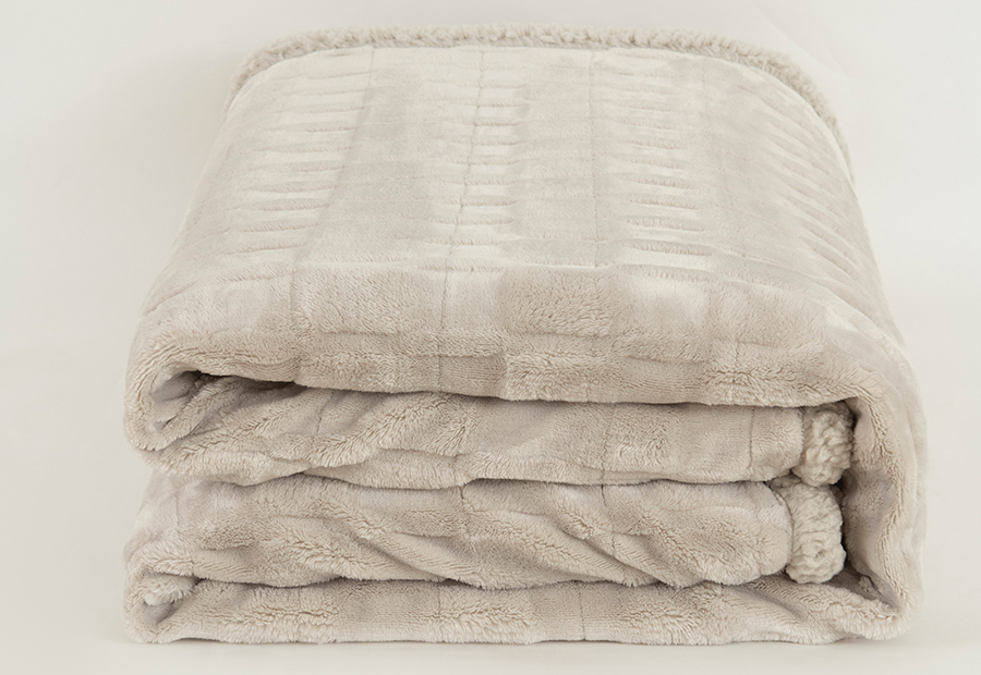 Manta plaid y Pie de cama en tejido sedalina en relieve en la parte superior y sherpa borreguito a tono en el reverso de la marca Clara Vidal. Tejido extra suave y cálido. Tamaño: 140x200 cm. Se puede utilizar como manta plaid multiusos y como pie de cama. Composición: 100% Poliéster. Packaging a granel con cinta atada y cartón impreso con información.