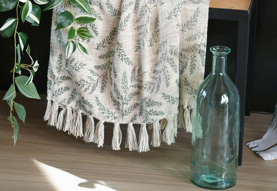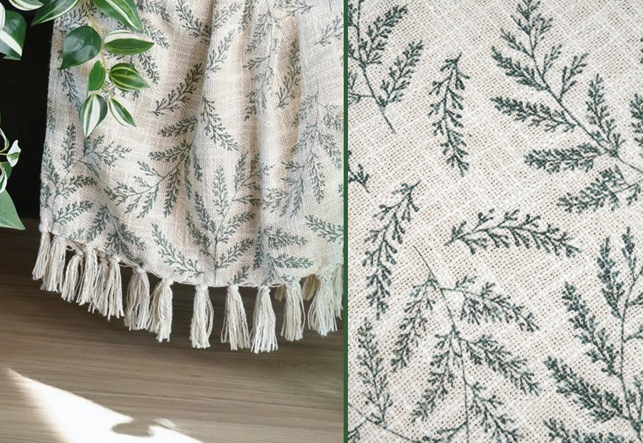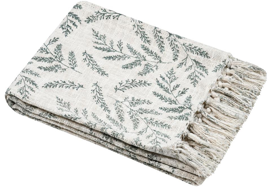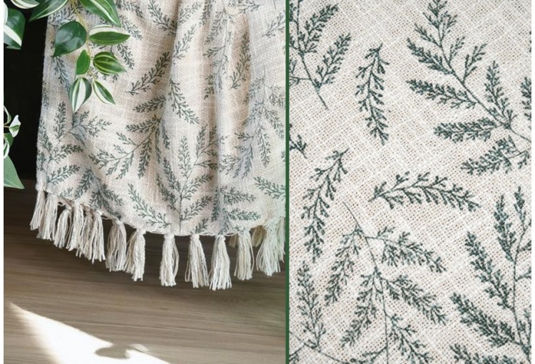 Manta plaid y Pie de cama en tejido jacquard de la marca Stof. Tamaño: 125x150 cm. Se puede utilizar como manta plaid multiusos y como pie de cama. Composición: 100% Algodón. Packaging a granel, con blister de cartón impreso con fotografia e información y percha para colgar.