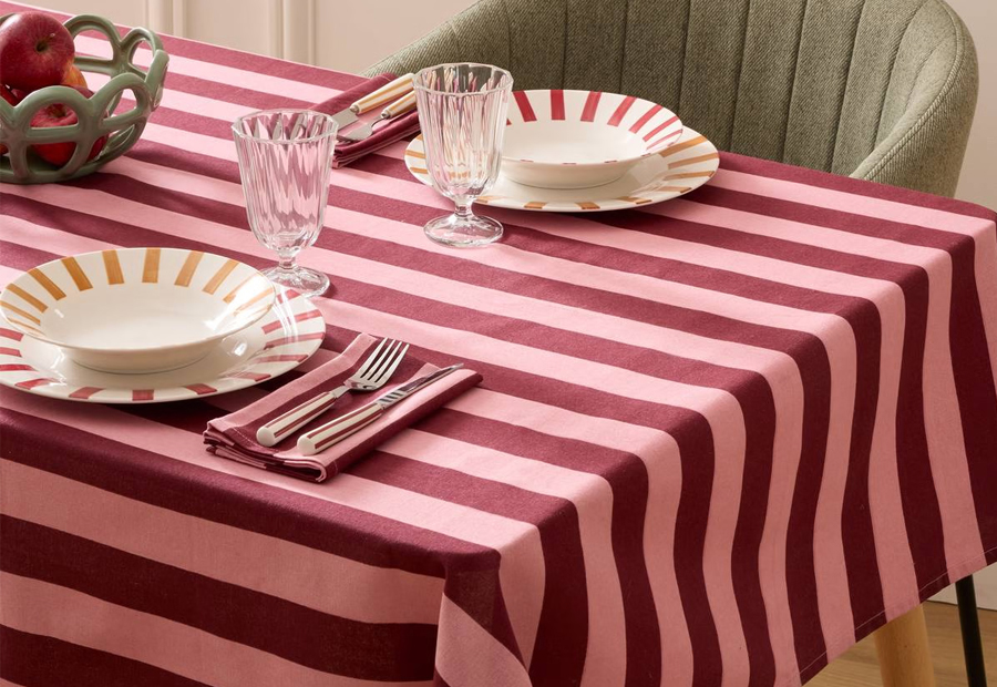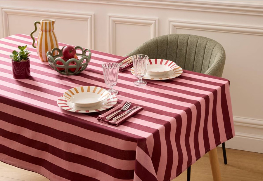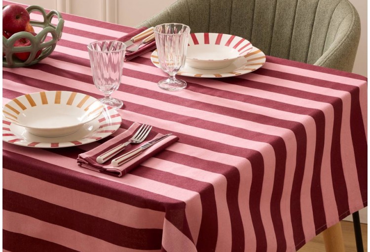 El colorido mantel Cereza de Atmosphera es ideal para crear una mesa festiva. De forma rectangular, el mantel Cereza decorará a la perfección una mesa de comedor grande. Está hecho de algodón con rayas que darán vida a tu decoración. Gramaje de algodón: 170 g/m². Lavable a máquina. Tamaño: 150x250 cm.