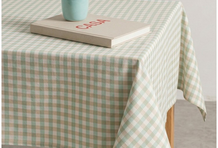 Mantel Antimanchas Algodón GAMUSI Vichy Lino Mavy agua