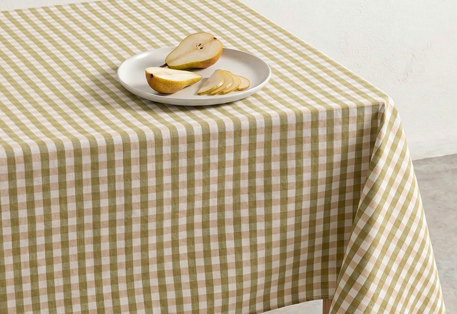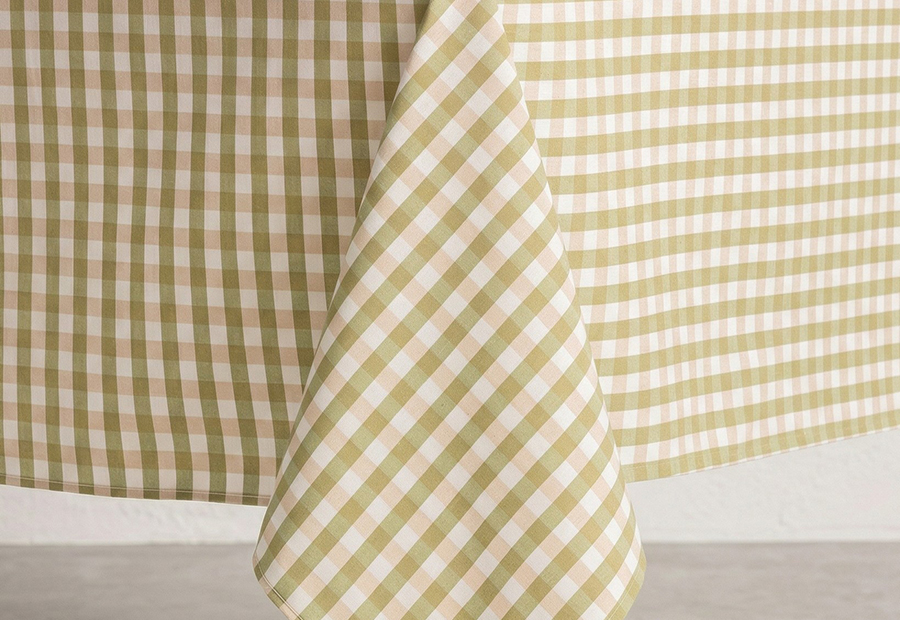 Mantel Antimanchas Algodón GAMUSI Vichy Lino Mavy verde