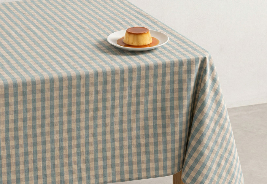 Mantel Antimanchas Algodón GAMUSI Vichy Lino Novy azul