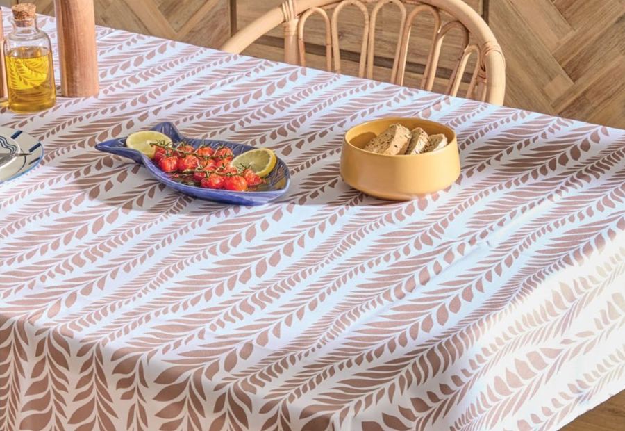 Mantel antimanchas estampado de la marca Atmosphera. Tamaño: 140x240 cm. Para 6/8 comensales. Composición: 100% poliéster.