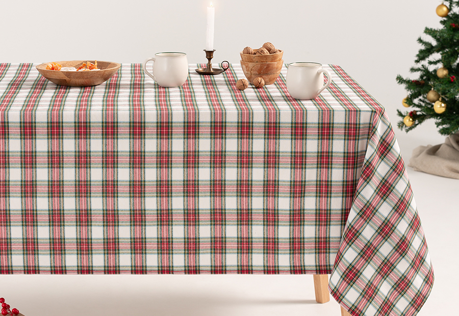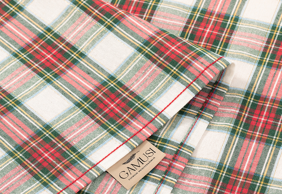 Mantel Jacquard Navidad GAMUSI Algodón Check blanco