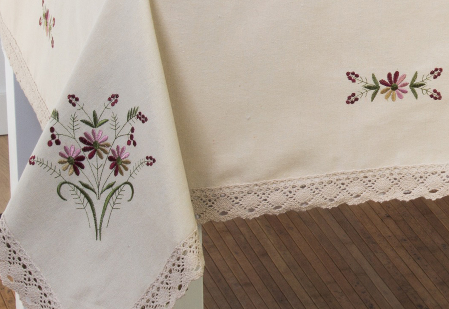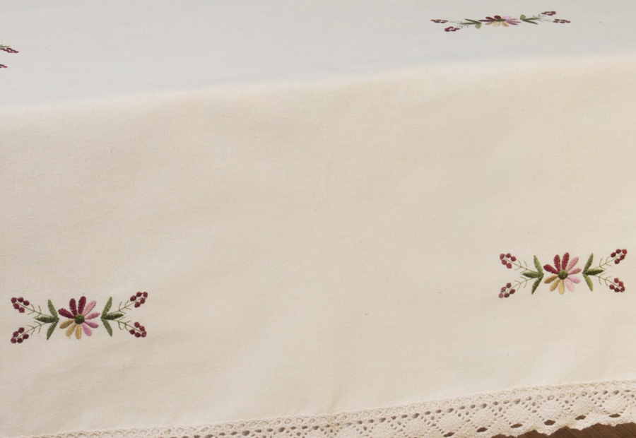 Mantel Rústico 135x180 Decorativo IDEAL Bordado+Puntilla 7628