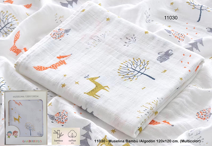 Muselina Estampada 120x120cm Bambú GAMBERRITOS Animals 11030
