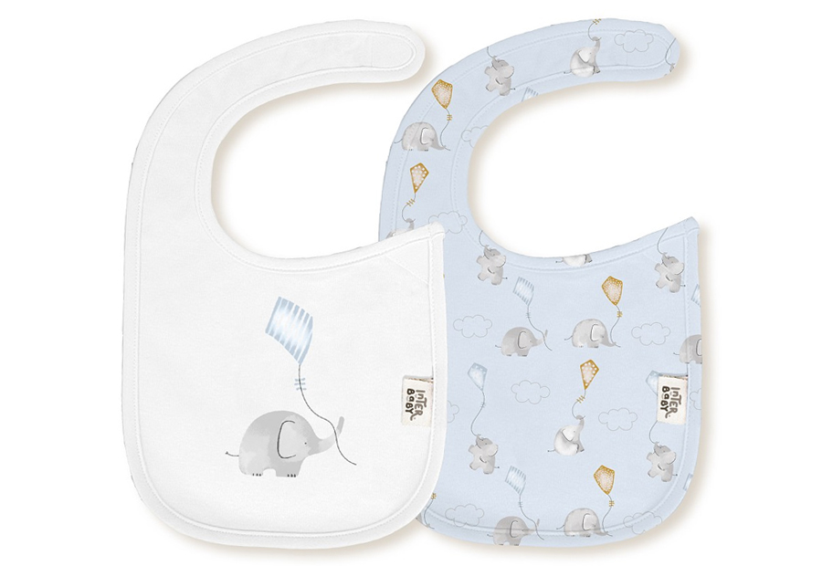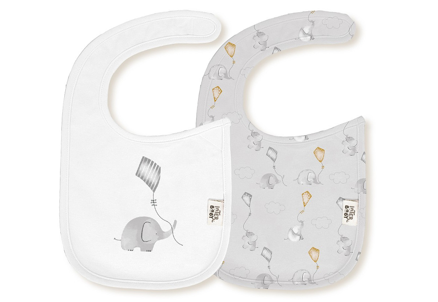 Pack 2 Baberos Bambú 20x30 INTERBABY Elefante Cometa 00342