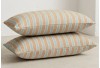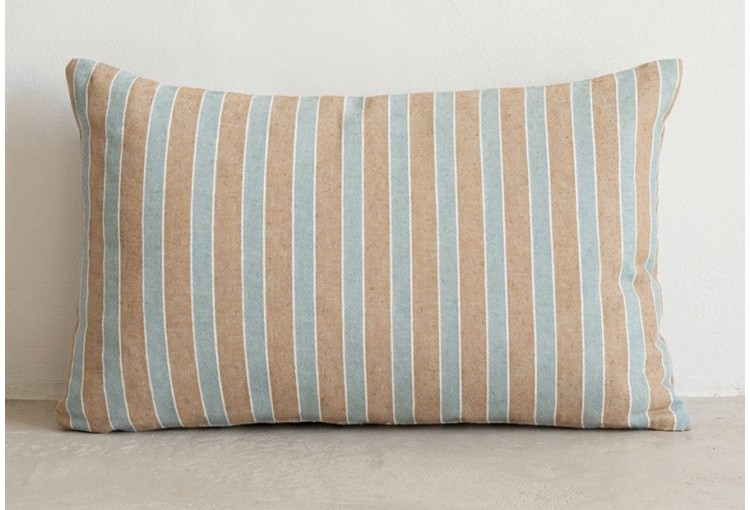 Pack que contiene 2 fundas de cojín de la marca Gamusi. Tamaño: 30x50 cm. Composición: 70% Algodón - 30% Poliéster. Cierre en cremallera invisible. Packaging en bolsa de pvc protectora. Fabricado en España. Combina rayas, texturas y hilos en relieve evocando calma, frescura y estilo natural.