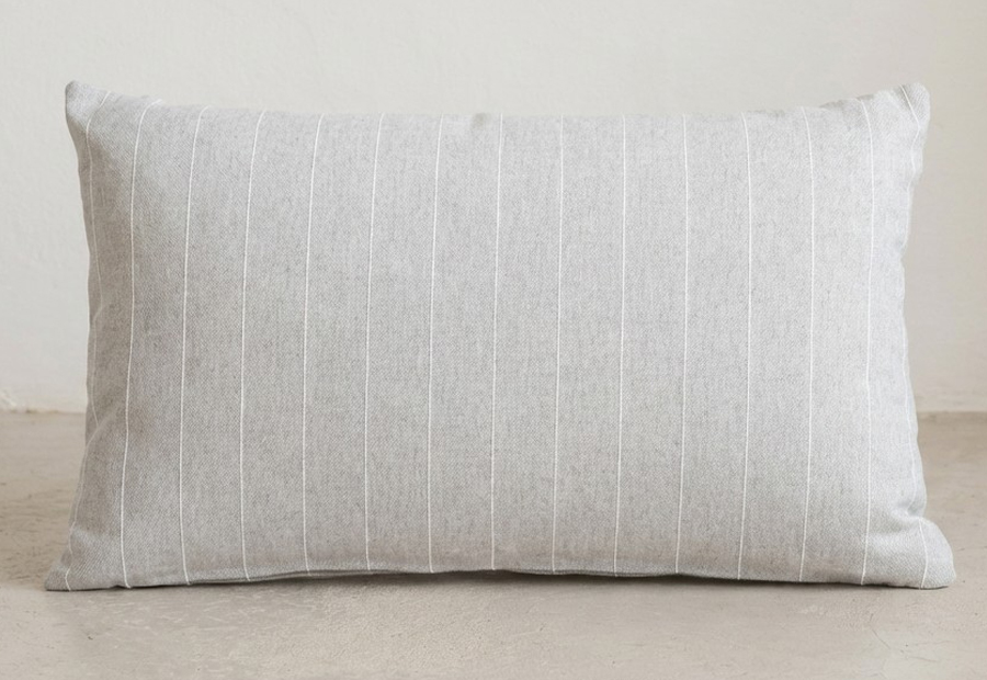 Pack que contiene 2 fundas de cojín de la marca Gamusi. Tamaño: 30x50 cm. Composición: 70% Algodón - 30% Poliéster. Cierre en cremallera invisible. Packaging en bolsa de pvc protectora. Fabricado en España. Combina rayas, texturas y hilo en relieve evocando calma, frescura y estilo natural.