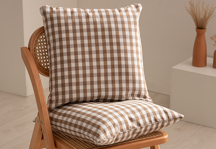Pack 2 Fundas Cojín 45x45 GAMUSI Algodón Cuadro Vichy taupe