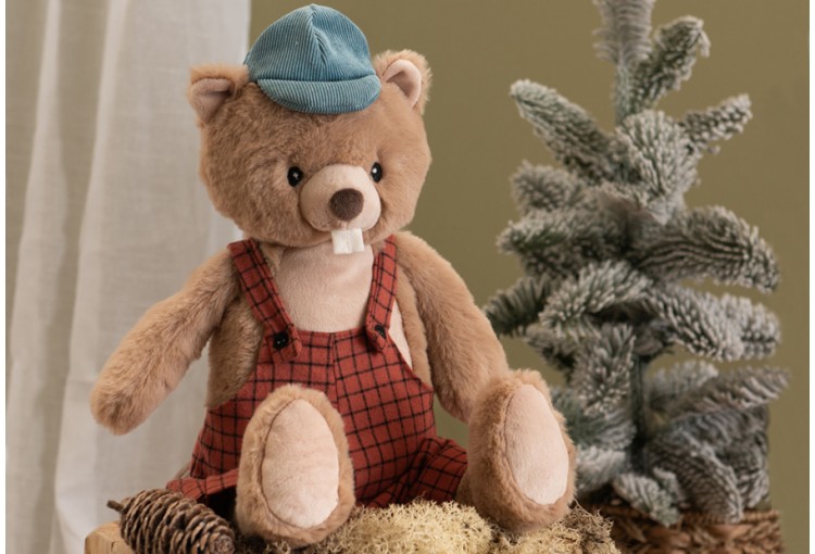 Peluche Victor El Castor de la marca Amadeus. Tamaño: Altura: 40 cm x Ancho: 15 cm x Profundidad: 20 cm. Peso: 0,19 kg. Confeccionado en poliéster y algodón para conseguir una suavidad óptima. Su diseño cuidado con sus vestido a cuadros y gorra azul atre todas las miradas.