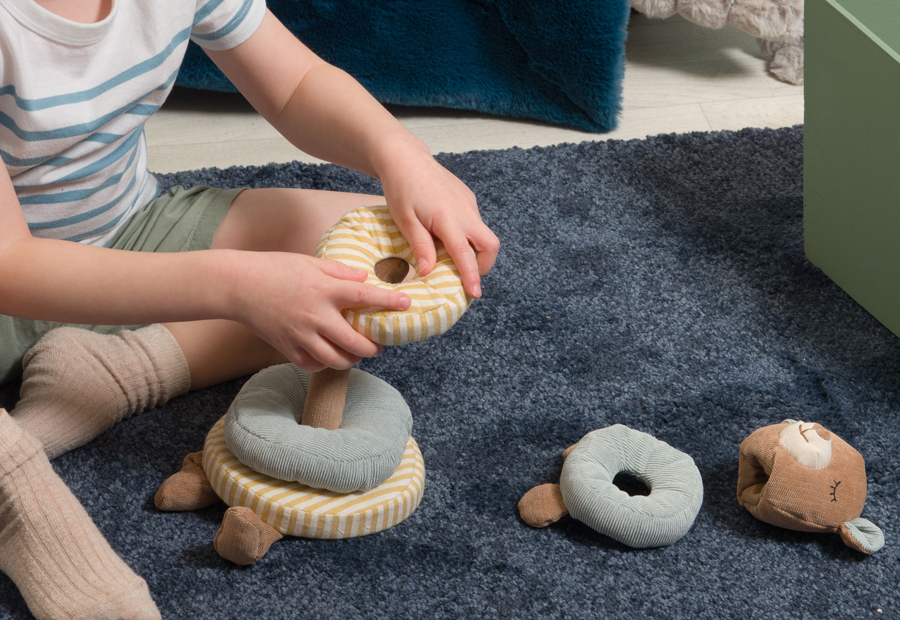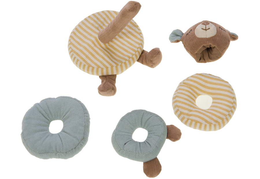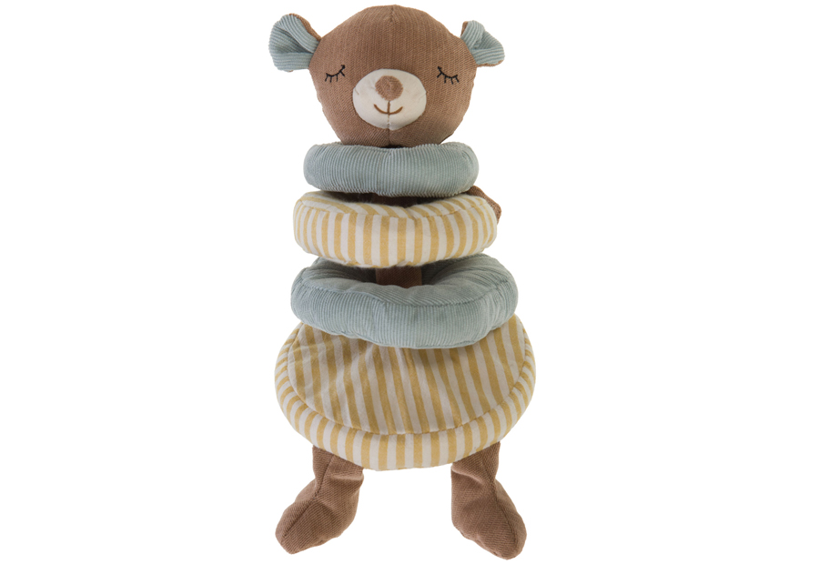 Juguete en forma de peluche osezno que se desmonta y se vuelve a montar apilandolo de la marca Amadeus. Tamaño: Altura 15 cm x Ancho 20 cm x Profundidad 16 cm. Peso: 0,09 kg. Combina suavidad e interactividad para los más pequeños. Sus anillos coloridos y táctiles fomentan el desarrollo de la motricidad fina y la coordinación mano-ojo.