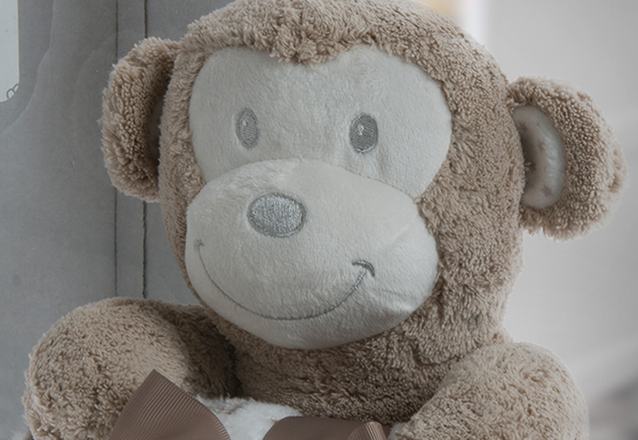 Peluche en forma de koala y de mono con manta estampada con estrellas a juego de la marca Gamberritos. Dos colores disponibles: gris el koala y beige el mono.