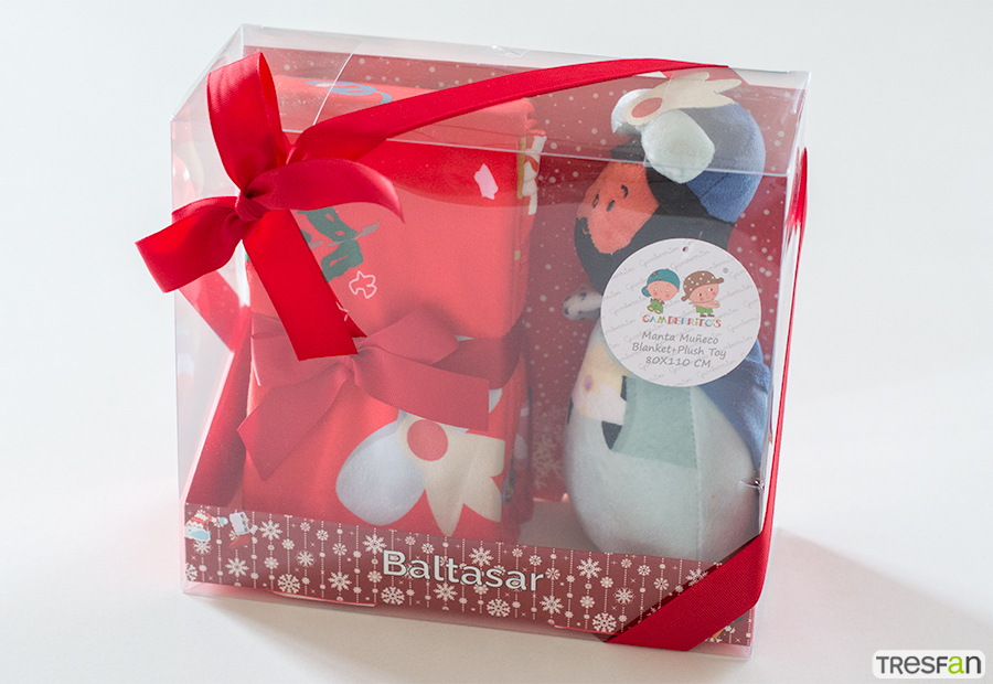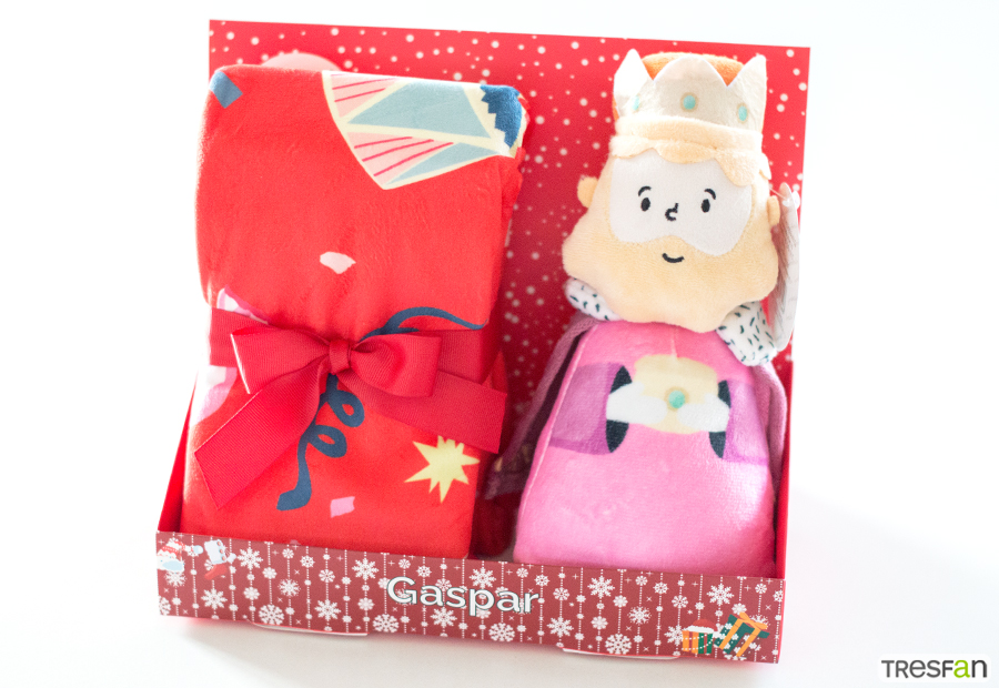 Peluche de sus majestades los reyes magos con manta estampada a juego de la marca Gamberritos.