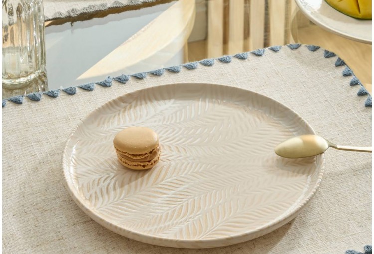 Plato de postre de cerámica gres de la marca Atmosphera. Inspirado en la naturaleza, el plato Giana aportará un toque poético a tu mesa. Tamaño: 22,3 x 2 cm. Peso: 0,49 kg. Apto para lavavajillas y microondas. Packaging a granel con etiqueta impresa.