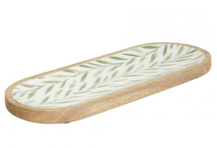 Plato Largo Madera Mango 40cm ATMOSPHERA Hojas Oliva 212209C