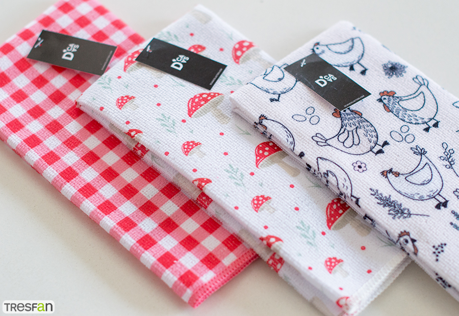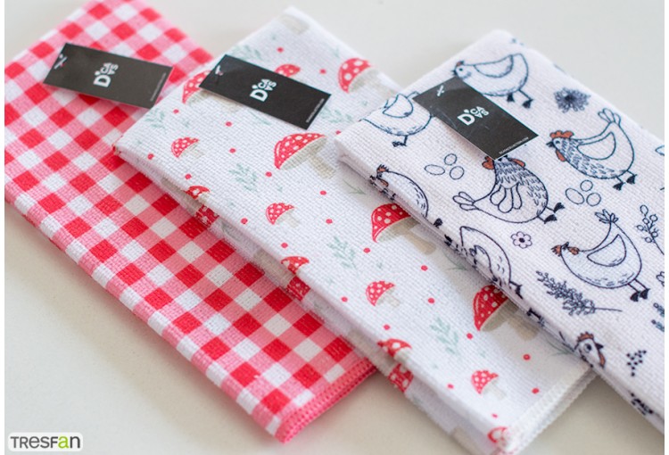 Set 12 Paños Cocina 35x50 D'CASA Microfibra Setas-Vichy-Gallinas