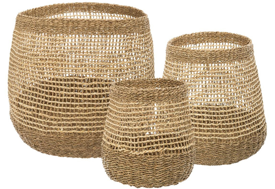 Set 3 Cestas Mimbre Natural ATMOSPHERA Redondas Caladas 168423