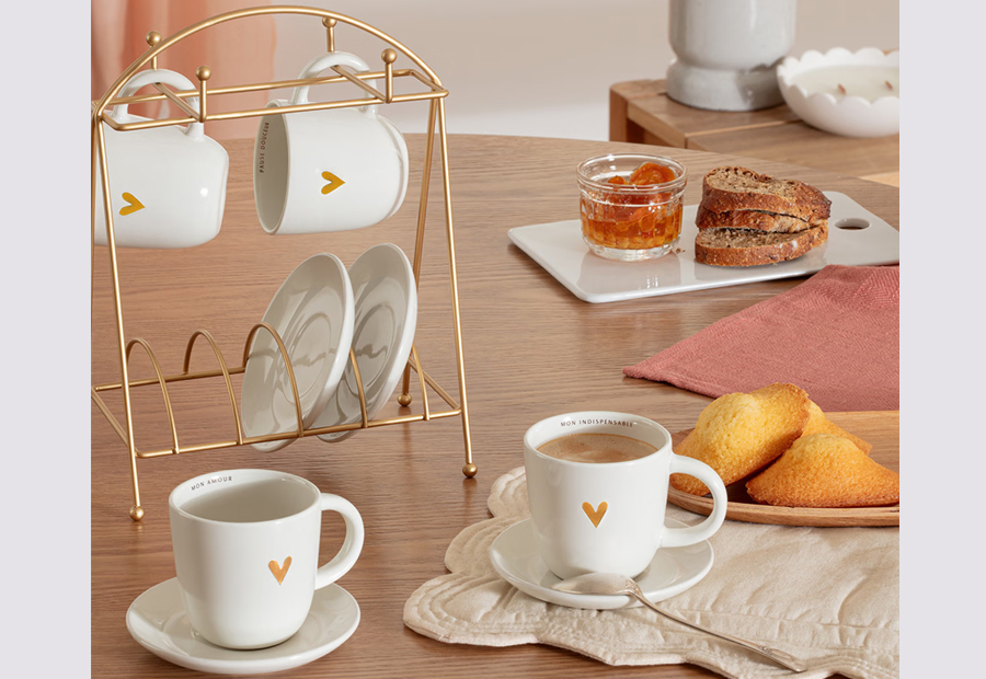 Set Estante 4 Tazas Café+Plato Cerámica 17cl SG Mon Amour 196340