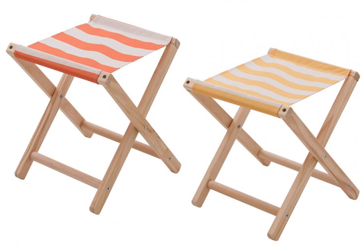 Taburete plegable y práctico con un toque veraniego de la marca Atmosphera. Tamaño: 37 cm de ancho x 32 cm de profundidad x 37,4 cm de alto. Se pliega fácilmente después de su uso para ahorrar espacio al guardarlo. Carga máxima: 110 kg. Patas de madera de pino. Asiento de poliéster. Dos colores disponibles: amarillo y naranja.