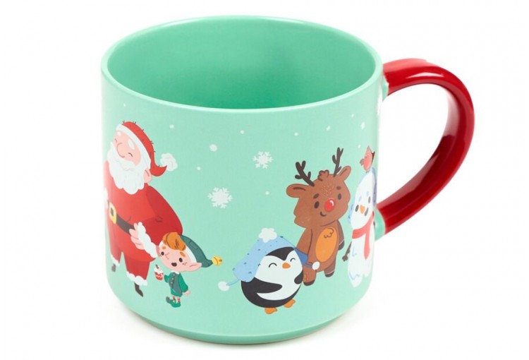 Taza de porcelana navideña de la marca Puckator. Packaging en caja. Capacidad 47 cl. Tamaño: Altura 9cm - Ancho 10 cm - Profundidad 8,5 cm. Peso: 0,491 kg. Material: Porcelana. Apto para microondas - Apto para lavavajillas.