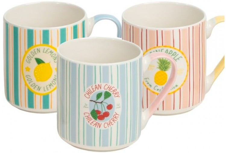 Taza Mug Cerámica 37cl D'CASA Frutas Rayas 314517