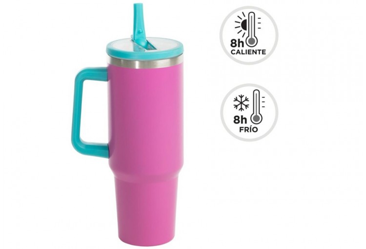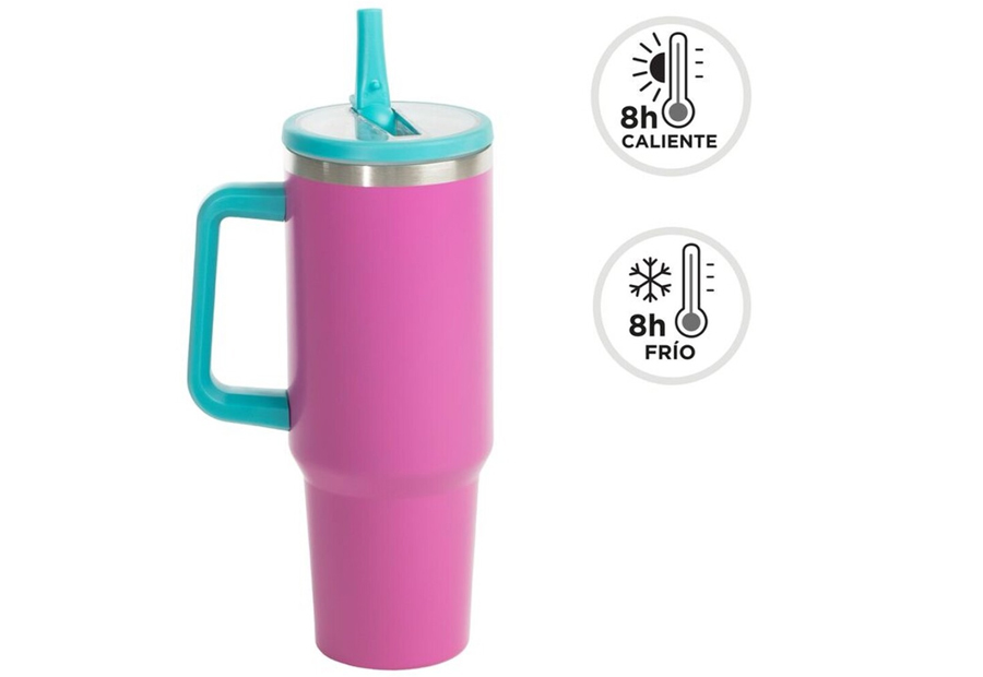 Taza Mug Térmica 1,2L Portable D'CASA Doble Pared Magenta Fluor