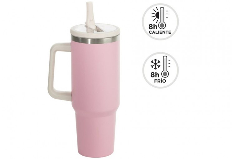Taza Mug Térmica 1,2L Portable D'CASA Doble Pared Rosa Fluor