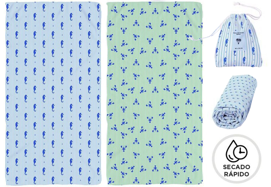 Toalla Playa + Bolsa Secado Rápido 90x170 D'CASA Mar 3067315