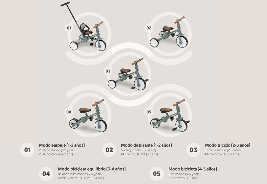 Triciclo Infantil 5 en 1 Multifuncional INTERBABY Rapit gris