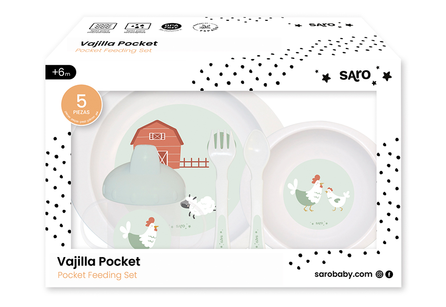 Vajilla Infantil 5 piezas SARO Pocket Ref.52820 Granja